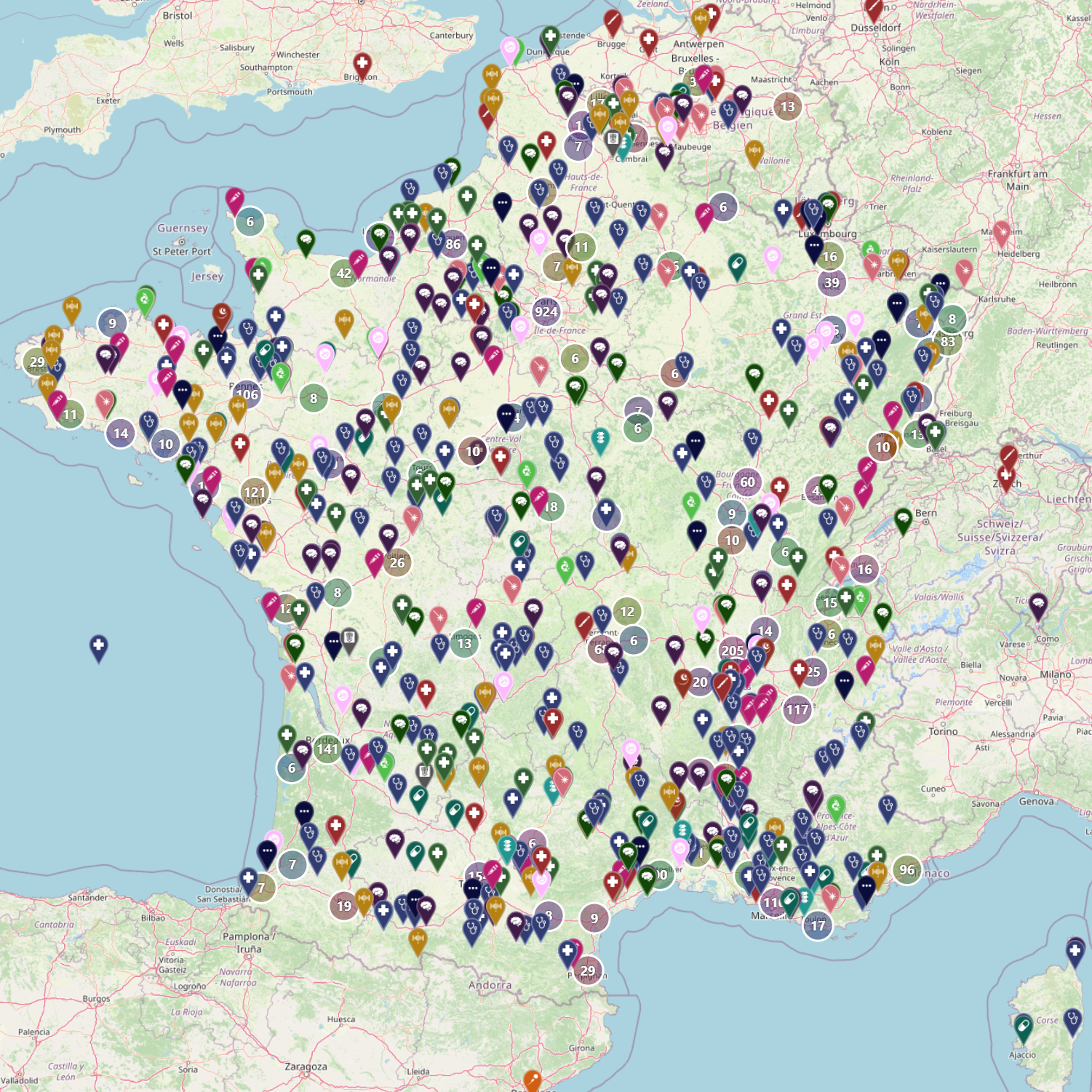 Carte collaborative privée de praticien‧nes